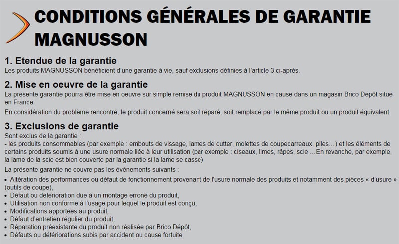Conclusion : la garantie à vie des outils magnusson par Brico Dépôt, ça marche !